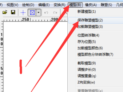 3、然后点击页面上方的-模型-保存雕塑模型选项。然后在弹出的对话框中,把模型保存到桌面 ,随便写个名字。