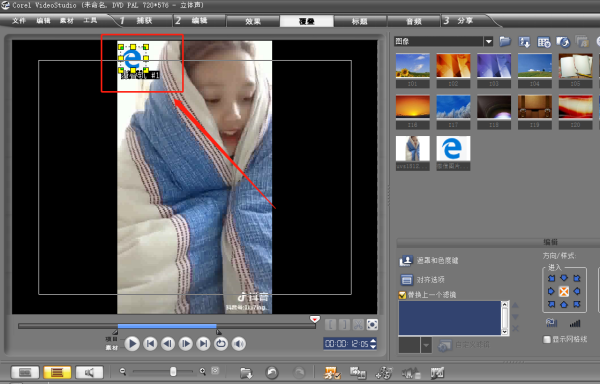 用会声会影的“覆叠轨”可以给视频添加LOGO,步骤:
