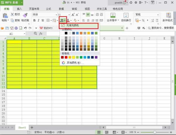 2、点击上方填充颜色的图标,选择无填充颜色,选中区域的填充色就会消失。
