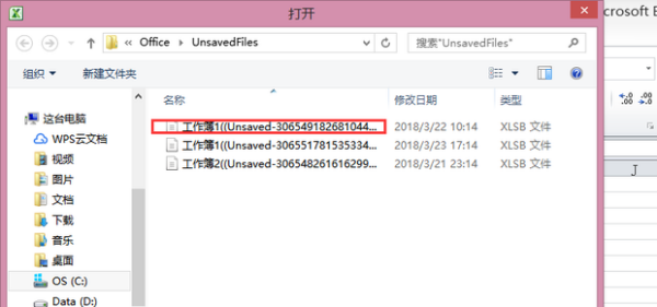4、弹出如下对话框,选择自己需要的未保存文件