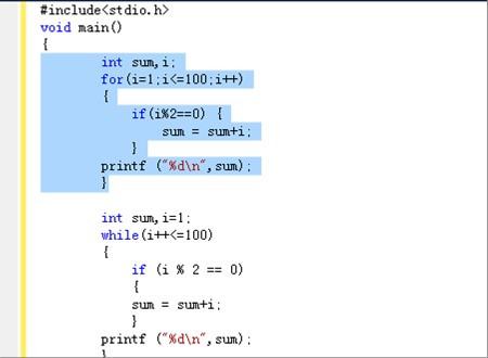 用C语言 求100以内所有的数之和(用while、for语句来实现)