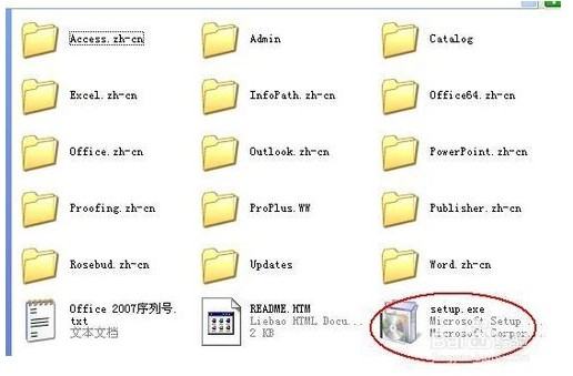 3、进行安装Office2007。在解压好的Office2007的文件夹里,双击“setup”或“setup.exe”的文件。