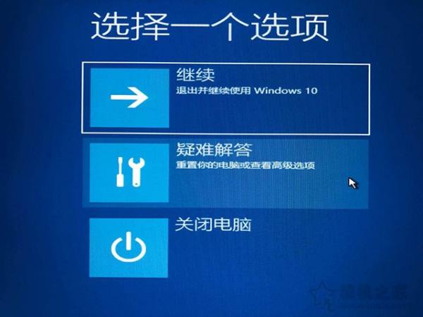 1、首先我们在Win10系统启动到LOGO界面后,强制重启,反复多次,直到显示疑难解答。