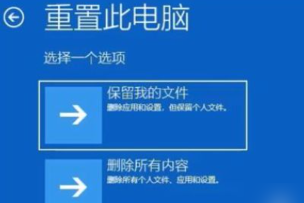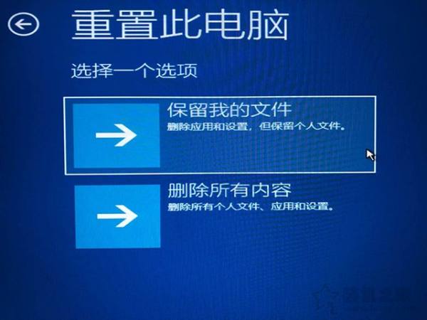 4、有两个选项,一个是保留我的文件,一个是删除所有的内容,我建议是保留我的文件。
