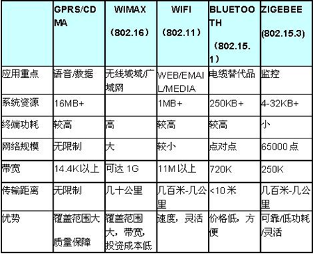 1、WIFI,WIFI是目前应用最广泛的无线通信技术,传知输距离在100-300M,速率可达300Mbps,功耗10-50mA。 2、Zigbee,传输距离50-300M,速率250kbps,功耗5mA,最大特点是可自组网,网络节点数最大可达65000个。 3、蓝牙,传输距离2-30M,速率1Mbps,功耗道介于内zigbee和WIFI之间。 这3种无线技术,从传输距离来说,是WIFI>ZigBee>蓝牙;从功耗来说,是WIFI>蓝牙>ZigBee,后两者仅靠电池供电即可;从传输速率来讲,是WIFI>ZigBee>蓝牙。 目前来说,WIFI的优容势是应用广泛,已经普及到千家万户。ZigBee的zigbee技术的组网优势在哪?