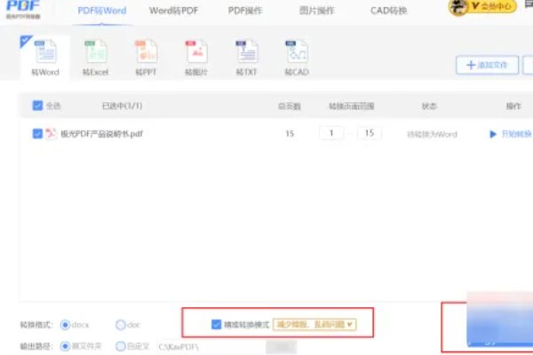 3、文件导进来后,可以根据自己的需求,是否选择【精准转换模式】,这个模式转换快、不会乱码,然后点击【开始转换】。