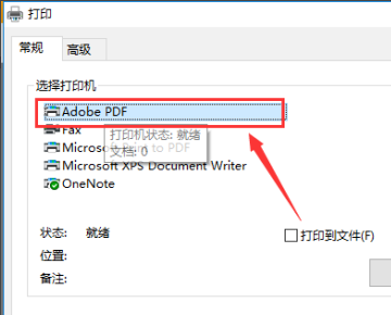 3、然后在打印机界面中,找到并选择adobe pdf打印机,如下图所示。