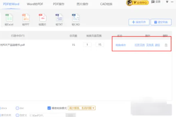 4、PDF转word转换成功后,可以点击【打开文件】,是直接打开转换成功的word文档。