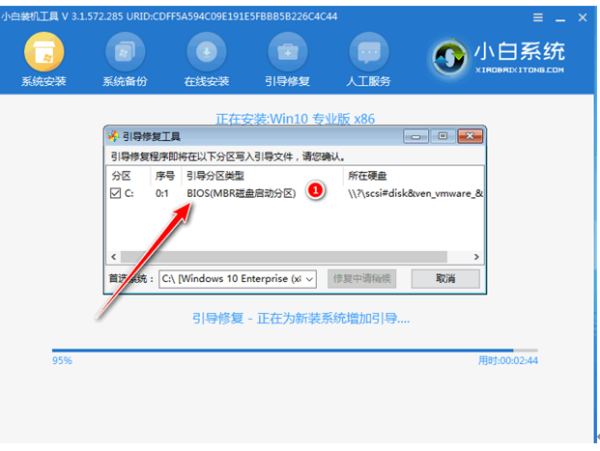 7、出现引导修复工具页面,在C盘前打勾,如图,点击确定。