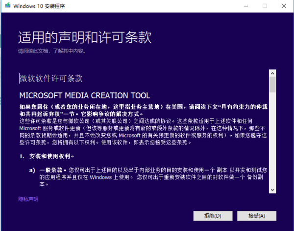 下载并安装后,该工具将指导你在电脑上设置 Windows 10。当你选择 Windows 10 时,所有 Windows 10 版本都可用,但企业版除外。有关企业版的详细信息,请转到批量许可服务中心。