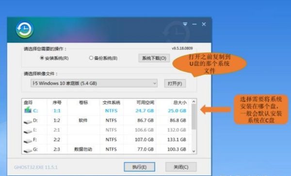 第四步:打开一键装机程序,点击“打开”选择下载好的win10镜像文件,勾选安装路径为C盘,最后点击“执行”即可