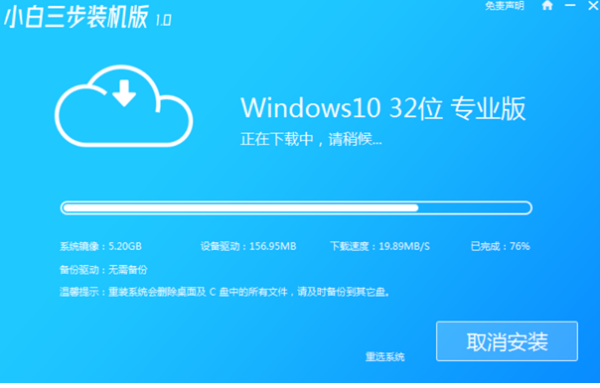 1、下载小白三步装机工具,打开并运行,点击立即重装。