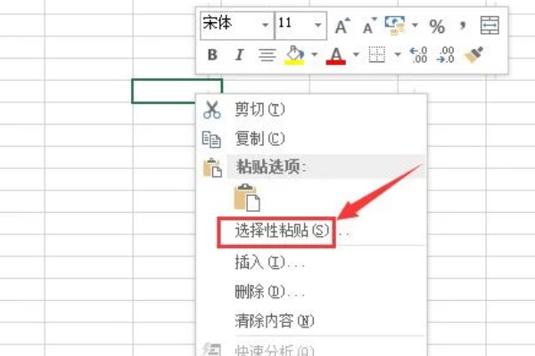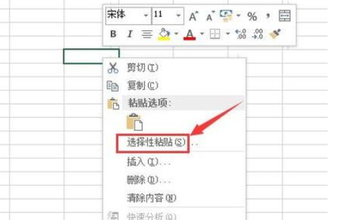 4、点击复制之后,我们将excel打开,然后单击鼠标右键在弹出的右键菜单哪里找到选择性粘贴选项