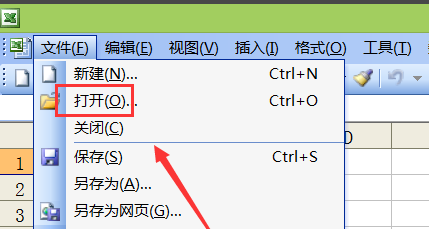 3.然后打开excel这款软件,在该界面内找到文件菜单里的打开选项。