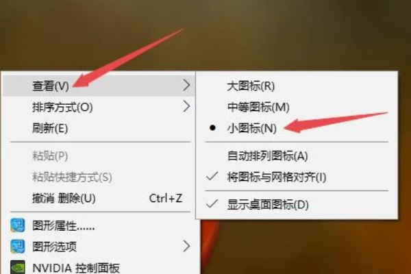 7、还可以右击电脑桌面的空白处,弹出的界面,点击查看,之后点击小图标,这样就可以把电脑桌面图标调小了。