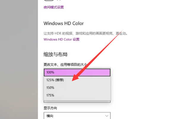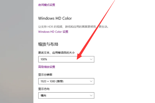 4、然后点击更改文本、应用等项目的大小边上的下拉箭头。