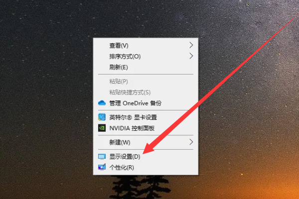1、第一步在桌面点击鼠标右键,然后点击显示设置,如下图所示。
