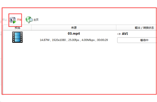 5、进入任务启动页面后,点击“开始”选项,MP4文件将被转换为AVI格式的视频。