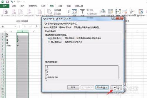 还可以使用分列法:选择数字所在列,点击数据,“分列”,如下图所示: