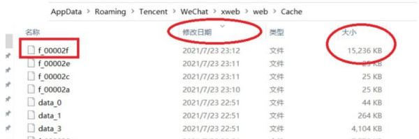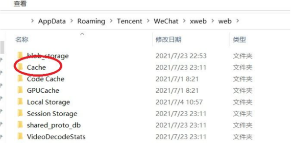 5.依次点击xweb文件夹,再进入Web,里面有一个Cache(缓存)文件夹,进入。