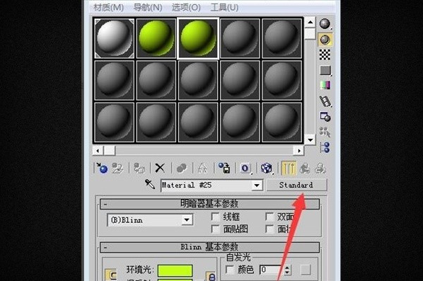 1、首先,在要封装对象颜色的位置打开材质,然后单击“Standard”按钮,如下图所示。