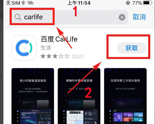 1、首先在App Store中搜索carlife软件,选择百度carlife并下载。