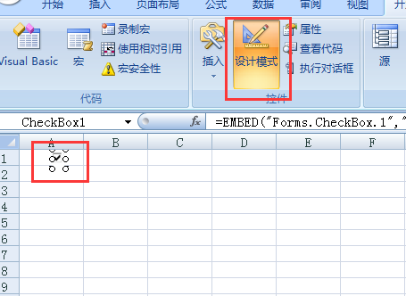 三、如下图,开启设计模式后,鼠标点击一下即可选中该复选框。