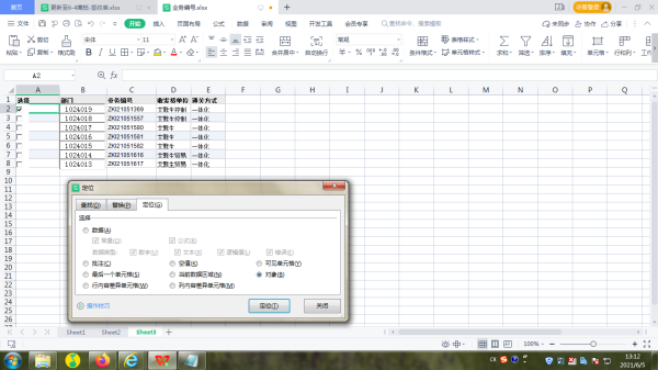 1、按CTRL+G定位,选择对象为对象。点击确定后全部的复选框就被自动选择,然后按DEL即可删除。