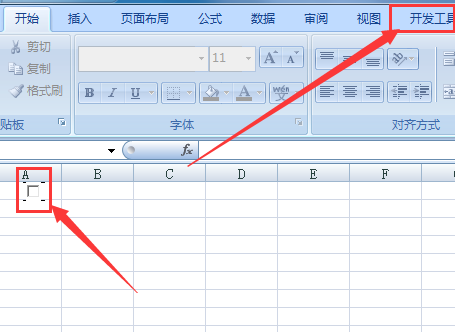 一、如下图,要删除Excel中的一个复选框,这时点击“开发工具”。