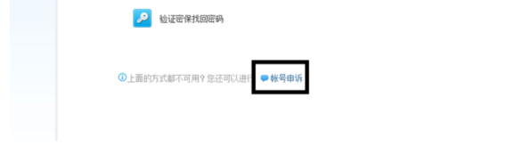 3、接着页面转到找回密码方法页面,因为密保问题也被修改,我们只有选择“账号申诉”。