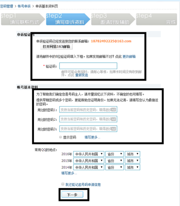 6、之后它会向你邮箱发一个验证码,输入进去就可以了,再填写你QQ的基本资料。