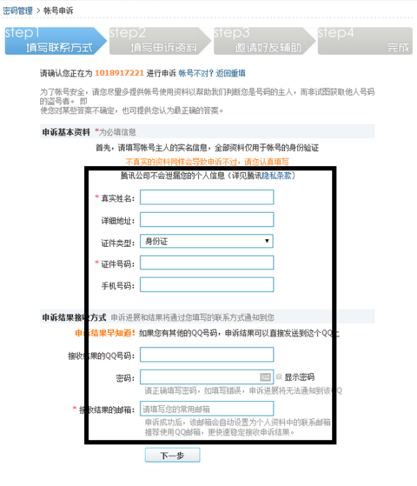 5、然后你需要填写你的真实信息,越准确越好,在最下面还需要填写一个给你发送申诉结果的邮箱。