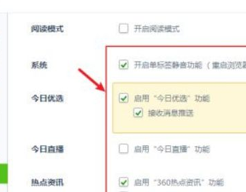 3、进入页面,取消勾选“今日优选”和“快资讯”的选项。