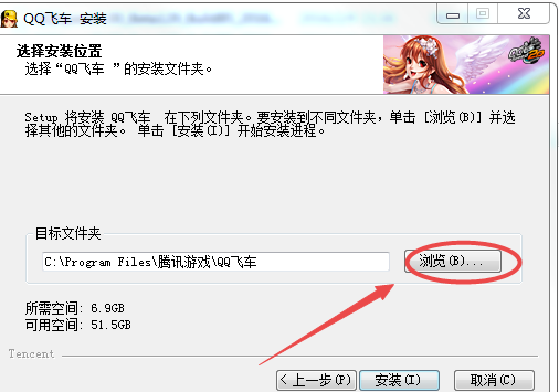 5、然后会弹出选择安装位置的界面,需要点击界面中目标文件夹后面的“浏览”按钮。