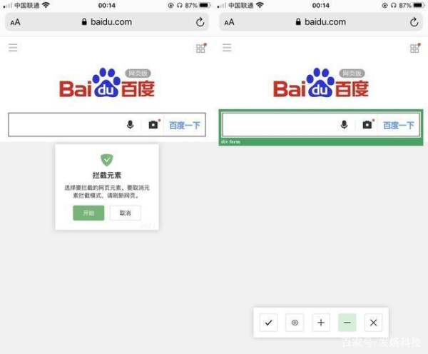 PC端净化广告就不赘述了,广告插件、拦截器“大显神通”,还可以自定义过滤器、自定义拦截页面元素等…但是你知道吗?手机端其实也能如此。可以先感受一下,下图是iPhone自带的Safari浏览器,打开的网页版百度。可以看到,除了最精简的搜索栏外,你看不到任何的多余页面元素,连信息流内容都没一点。