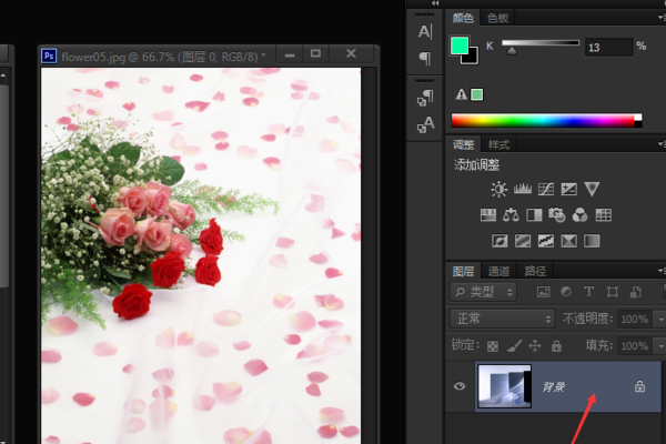 在photoshop里怎样把两朵花抠下来,背景变透明后,继续照原样放在一个图里?