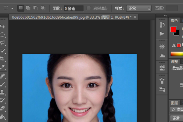 一、首先,打开ps cs6程序,然后在ps cs6程序中打开要更换背景的证件照。