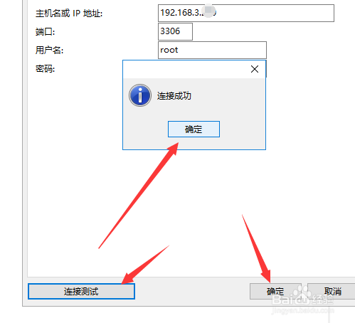 输入好数据库连接信息之后可以点击界面左下角的测试按钮,如果输入的连接信息没有问题会弹出‘连接成功’提示框。然后点击页面确定关闭数据库连接界面就可以操作数据库了。
