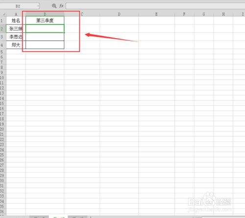 然后,我们选中Sheet2的B2选项,在单元格中输入“=”: