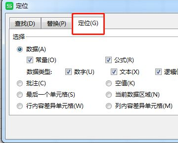 2.按键盘快捷键Ctrl+G,调出【定位】对话框3.【定 -