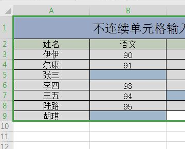 5、这样所有不连续空格都填充好了相同的内容了,如下图所示就完成了。