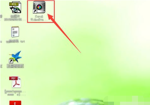1、首先,在桌面找到会声会影图标,单击打开,如图所示。