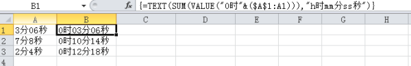 =TEXT(SUM(VALUE("0时"&($A$1:A1))),"h时mm分ss秒")