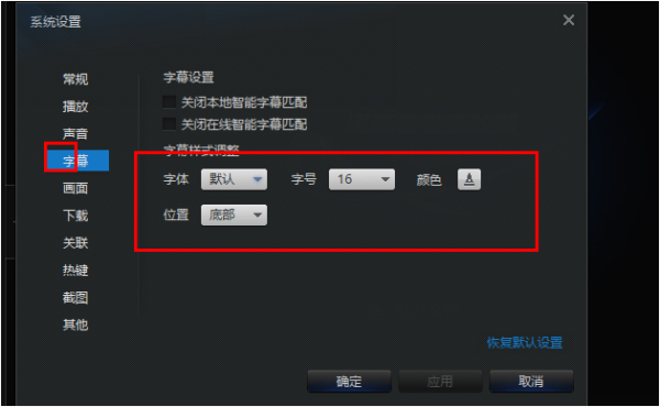 如果你的电影的字幕是电影文件自带的,就没办法了!因为电影和字幕已经捆在一起了!就像电影的一部分!你想放大电影的一部分是不行的! 如果是另外的字幕的话!对播放窗口右键------字幕-----样式设置 这可以设置的!怎样设置迅雷看看的默认字幕?