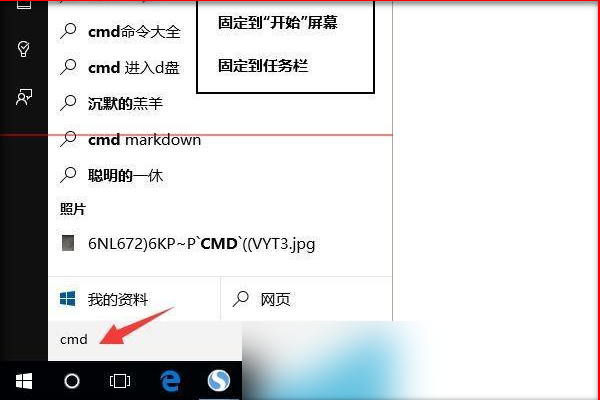 在桌面左下角的“Cortana”语音搜索助手框中输入“cmd”,待搜索结果出现后,右击“命令提示符”从其右键菜单中选择“以管理员身份运行”项。