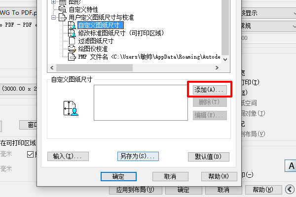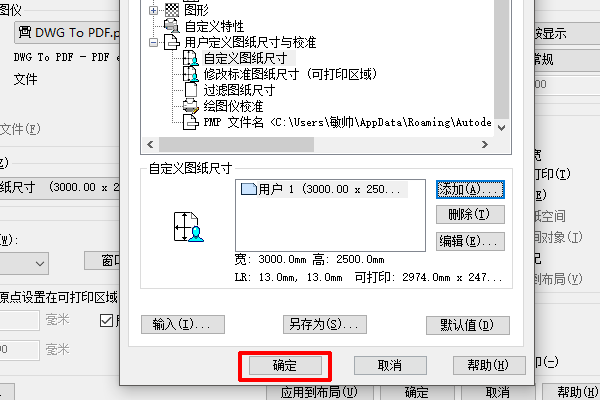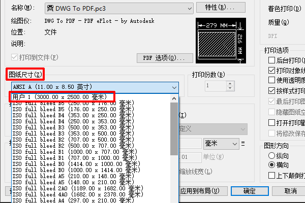 15、确定后,在“图纸尺寸”中,选择刚才创建的PDF尺寸。