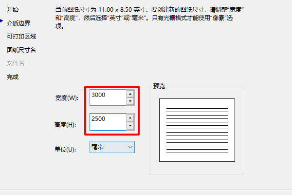 10、设置所打印的PDF宽度与高度,下一步。
