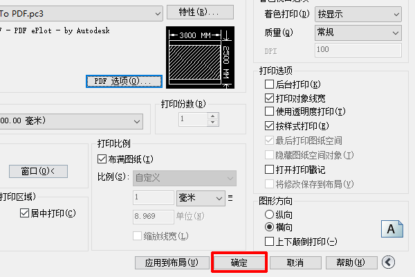 18、以上设置都完成后,点击确定,打印“PDF”格式的CAD文件了。