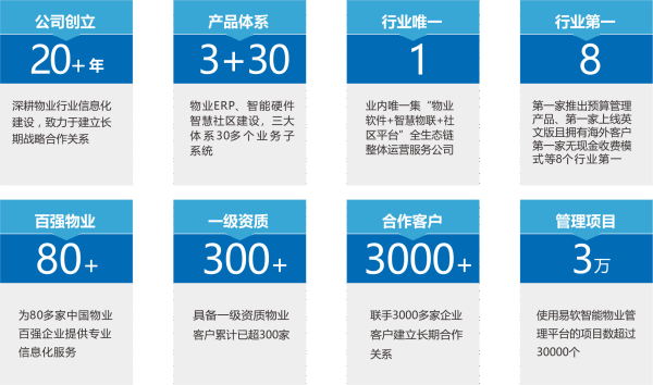 经过20年不断迭代,【易软智慧物业软件】拥有自主知识产权,所有模块都是自主研发。易软物业管理系统是易软智慧物业管理平台的核心,30多个功能模块涵盖了物业公司几乎所有需求。在技术上深度整合“软硬一体”物业服务新生态,专注物业数字化和智慧化服务,研发实力与服务品质始终保持行业领先,独家构建的“物业ERP+智慧物联+社区增值服务”三位一体全生态链综合解决方案,为物企智慧化转型赋能,实现互惠共赢。