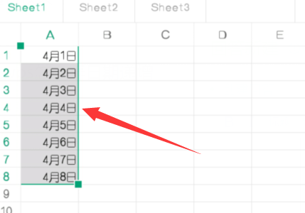 5、即可将A1单元格中的日期按照递增的顺序向下填充了。